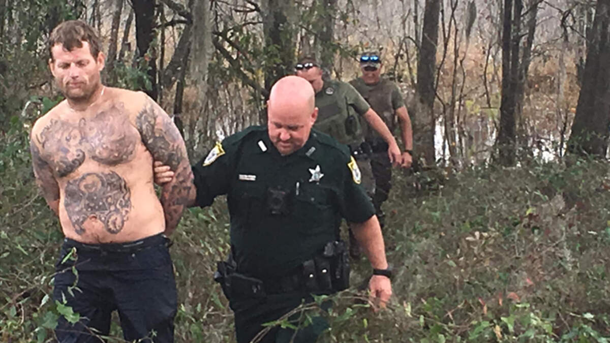"Now we can only assume that Mr. Booth has seen one too many action movies," said the Suwannee County Sheriff's Office in a statement on Facebook. "He didn't take into account that he's not a fish and had to come up for air and was quickly captured."